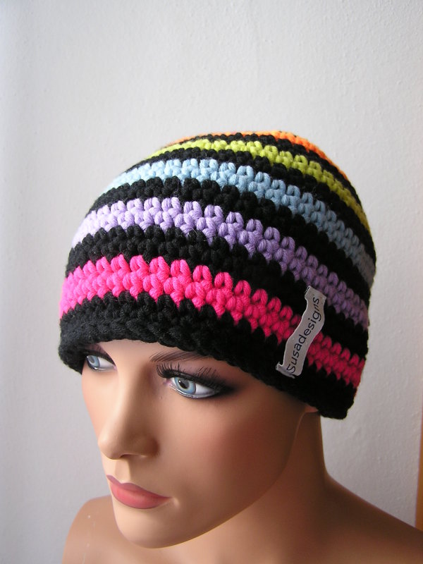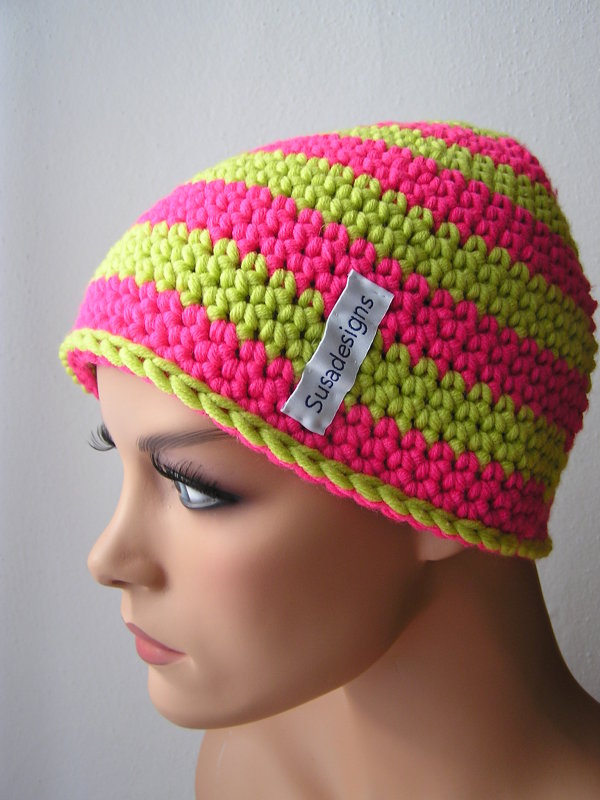 Häkelmütze Pink/Kiwi, Einheitsgröße Medium