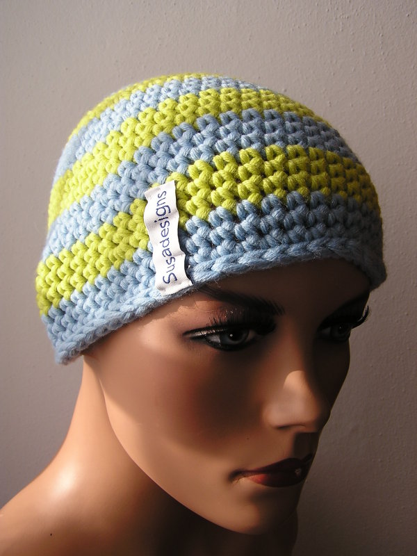 Häkelmütze Hellblau/Kiwi. Einheitsgröße Medium Klein