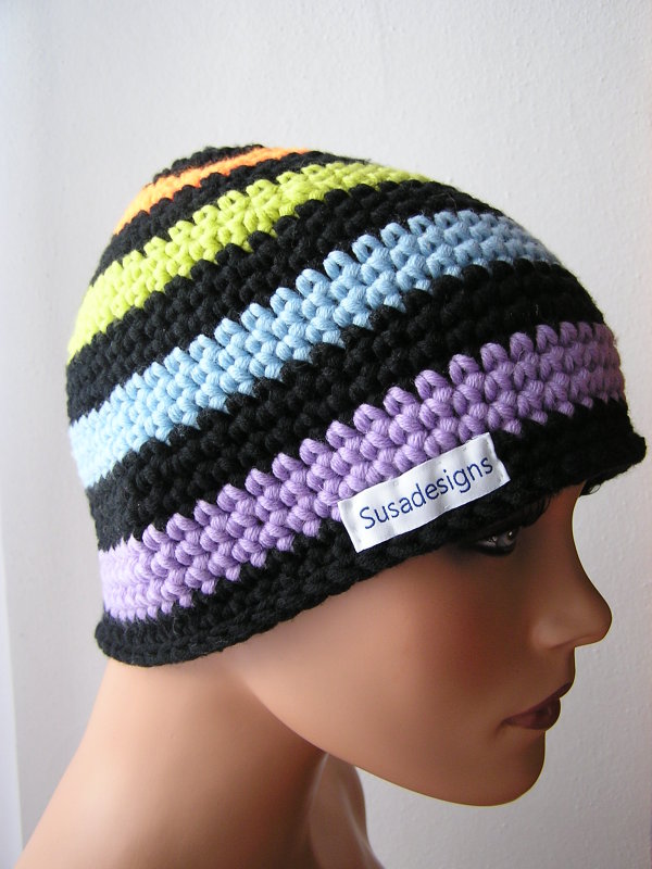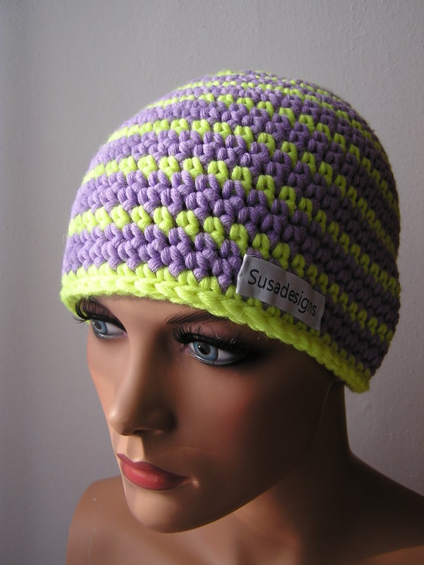 Häkelmütze Lila/Neongelb, Einheitsgröße Medium
