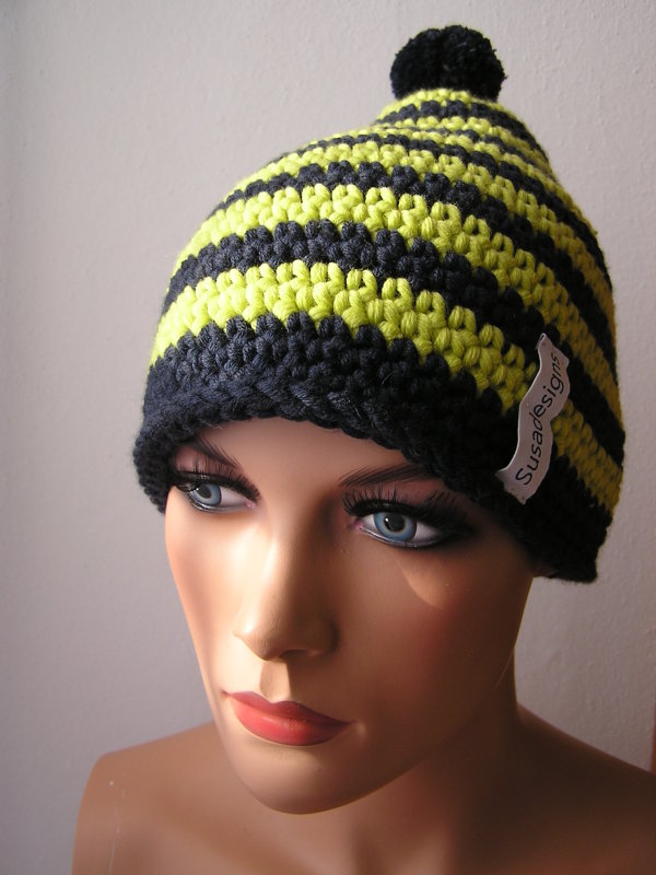 Häkelmütze Dunkelblau/Kiwi, Einheitsgröße Medium Groß
