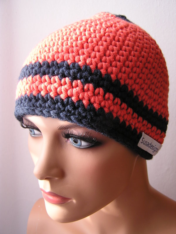 Häkelmütze Koralle/Dunkelblau, Einheitsgröße Medium