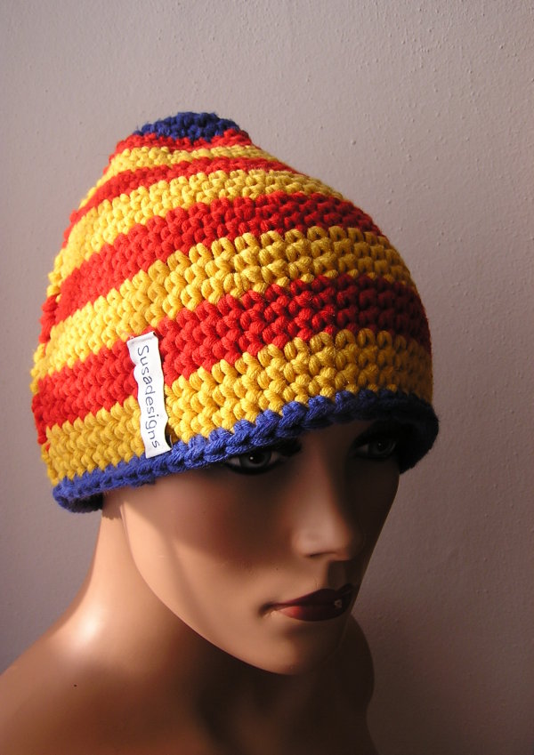 Häkelmütze Männer Rot/Gelb/Blau, Einheitsgröße Medium Groß